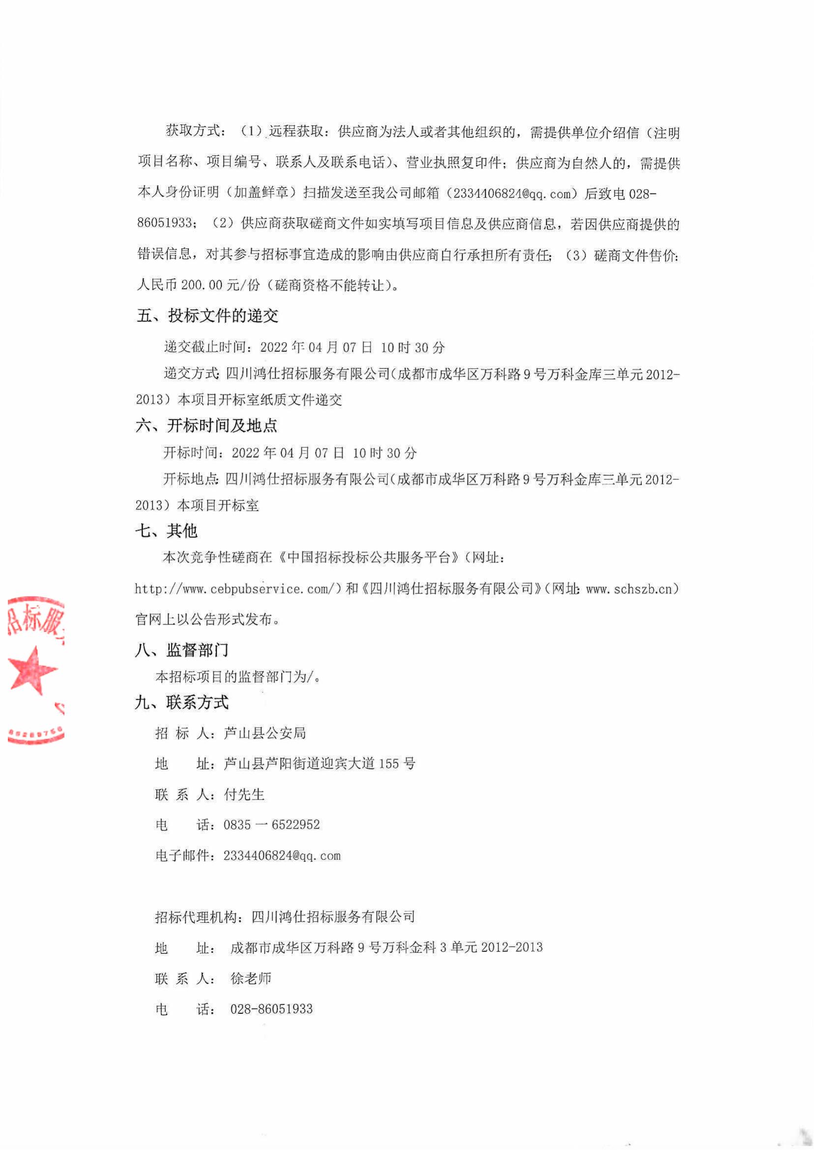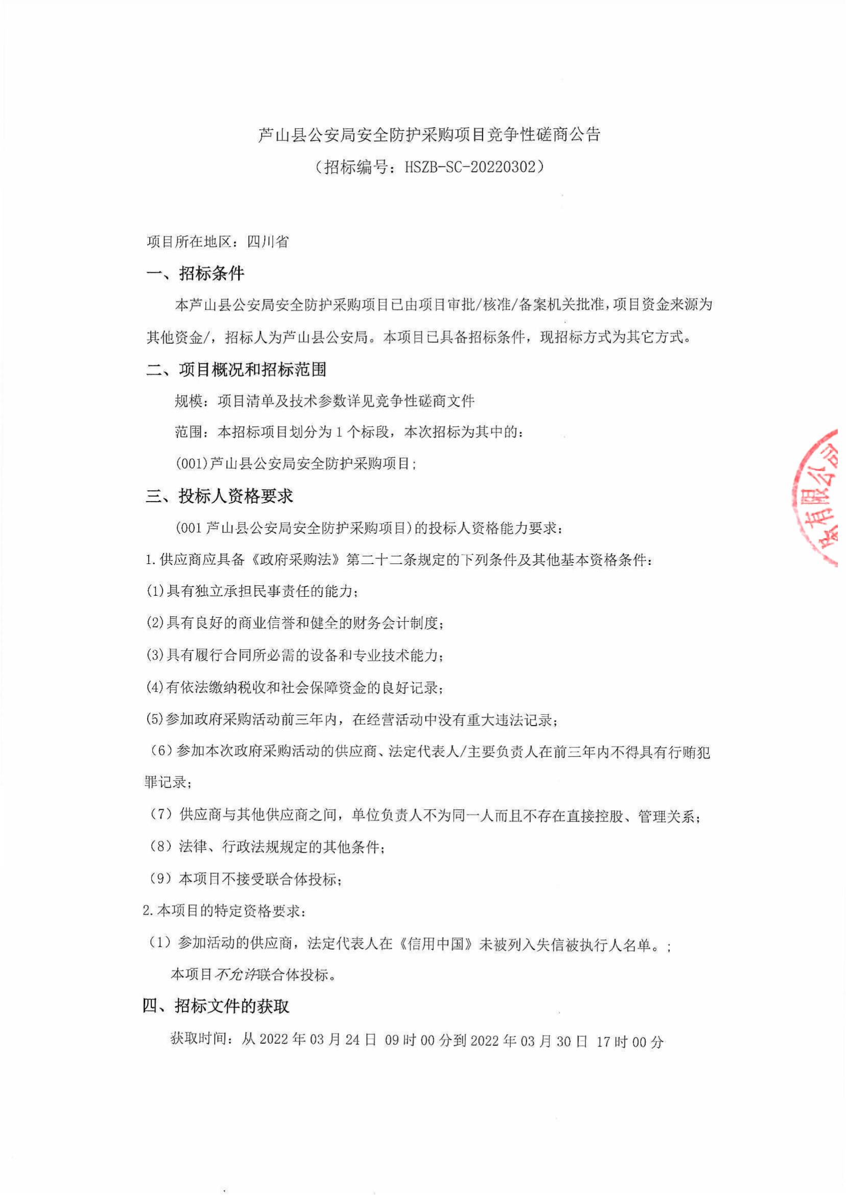 芦山县公安局安全防护采购项目竞争性磋商公告
