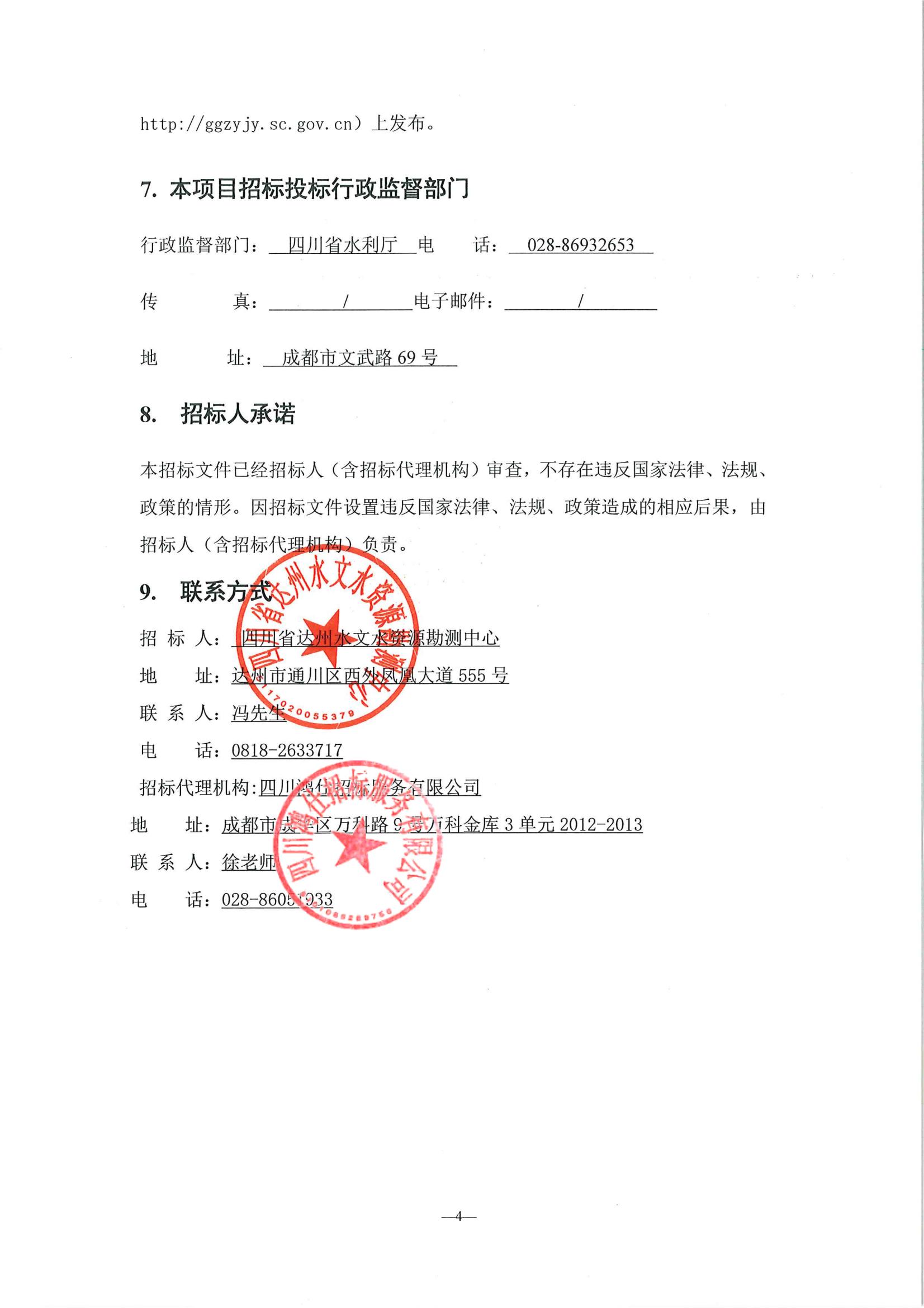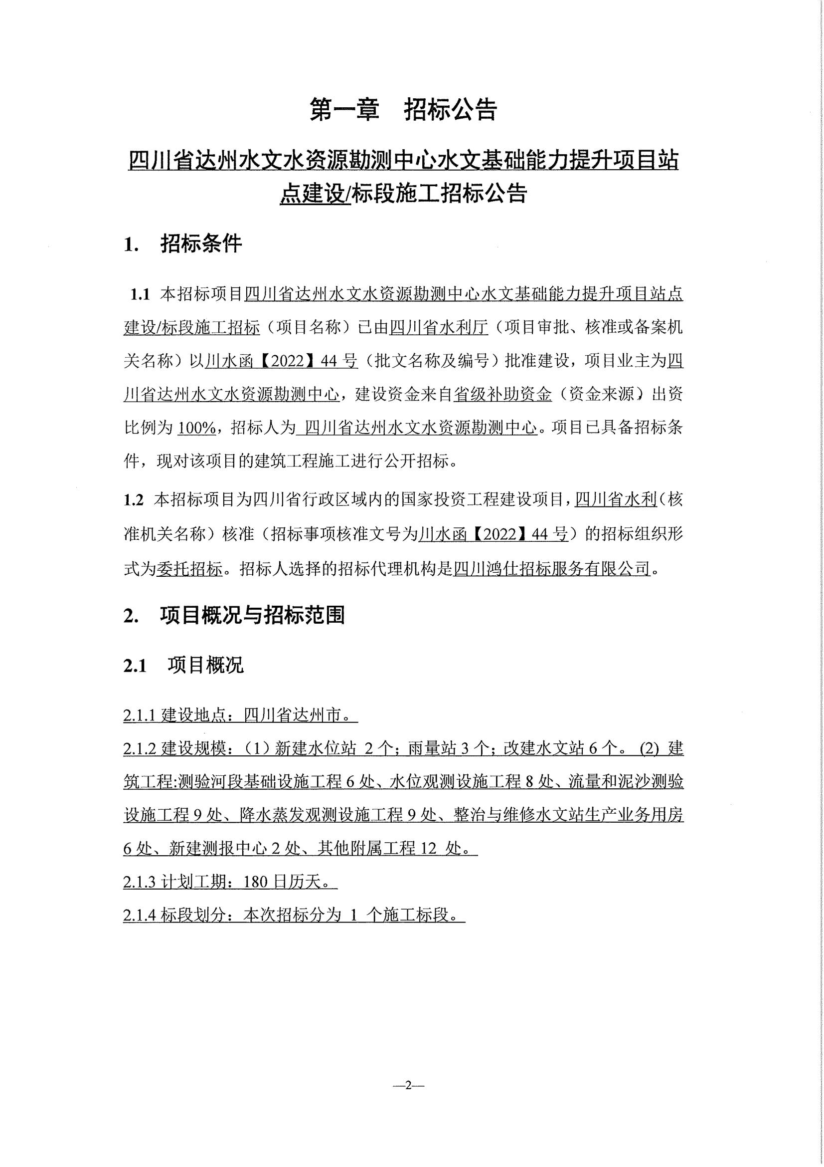 四川省达州水文水资源勘测中心水文基础能力提升项目站点建设/标段施工招标公告